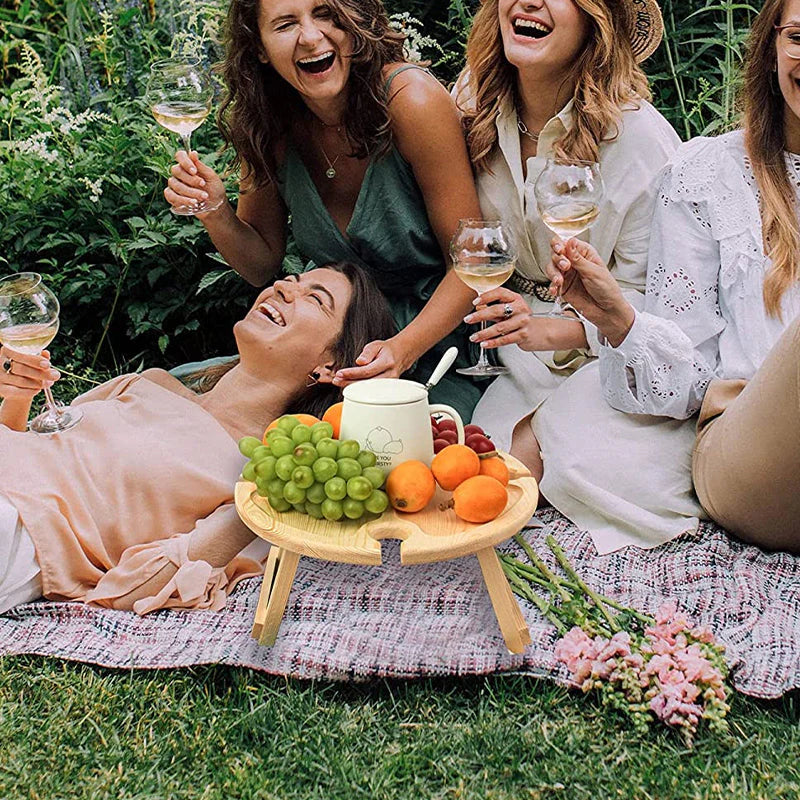 Der klappbare Holztisch ist perfekt für Picknicks und super einfach zu transportieren!