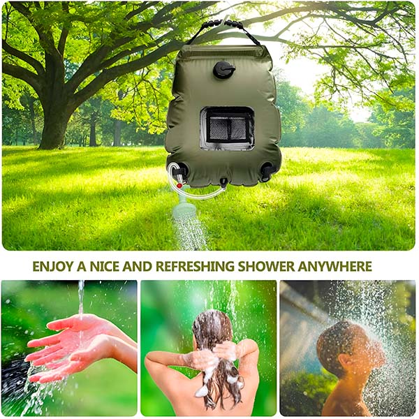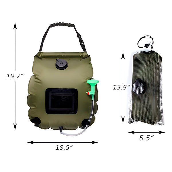 - 💧 Großzügige Kapazität: 20 Liter Fassungsvermögen für mehrere erfrischende Duschen unterwegs.