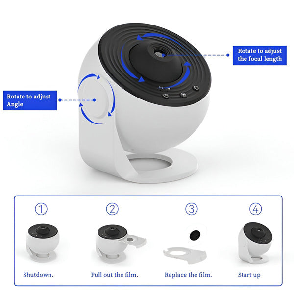 Der Sternenlicht Traumprojektor verwandelt Dein Schlafzimmer in eine zauberhafte Traumlandschaft. Mit funkelnden Sternen, sanften Farbwechseln und beruhigenden Projektionen schafft er eine entspannende Atmosphäre, die Dich sanft in den Schlaf wiegt. Perfekt für Kinder, Erwachsene und alle, die eine wohltuende Auszeit vom Alltag suchen.