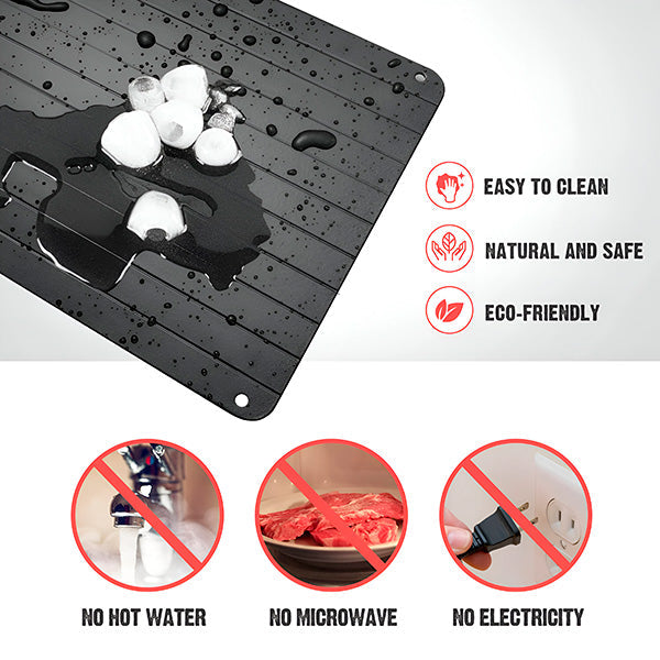 Keine stundenlange Wartezeit mehr! Mit der Thermoplatte für schnelles Auftauen kannst du Fleisch, Fisch, Gemüse und andere Tiefkühlprodukte bis zu 5x schneller auftauen – ganz natürlich, ohne Mikrowelle oder heißes Wasser. Die spezielle wärmeleitende Metalloberfläche sorgt für eine gleichmäßige und sichere Auftauzeit, damit deine Lebensmittel frisch, saftig und voller Geschmack bleiben!