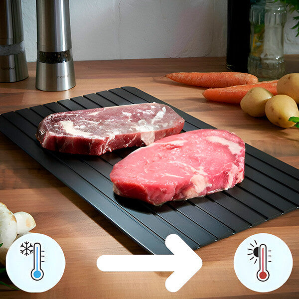 Sichere dir die Thermoplatte für schnelles Auftauen und spare wertvolle Zeit in der Küche. Jetzt bestellen und frische Lebensmittel in Rekordzeit genießen! 🍗⏳✨
