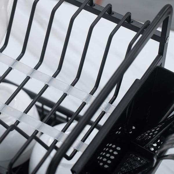 "Super praktischer Geschirrhalter, der meine Küche viel ordentlicher macht! Endlich trocknet alles schneller und ohne unschöne Wasserpfützen!"