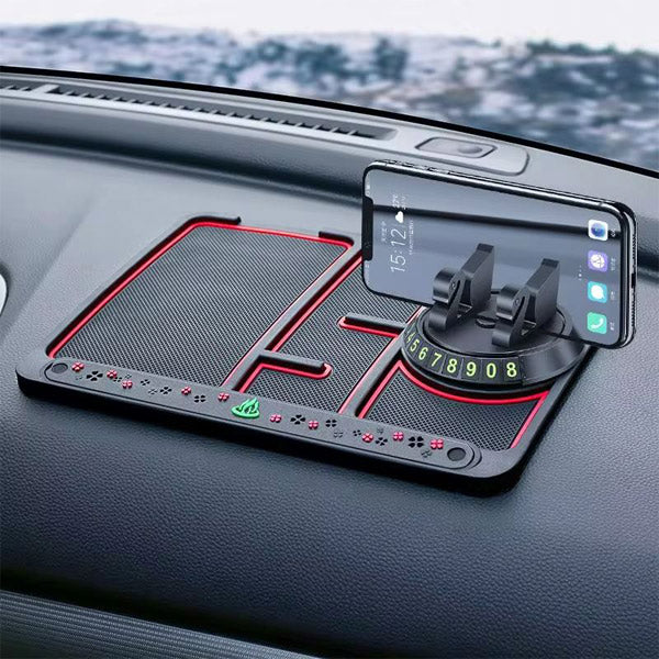 "Die Anti-Rutsch-Matte hält Handy, Schlüssel und andere Gegenstände sicher an ihrem Platz, selbst bei scharfen Kurven. Sie ist langlebig und leicht zu reinigen – eine praktische Ergänzung fürs Auto."